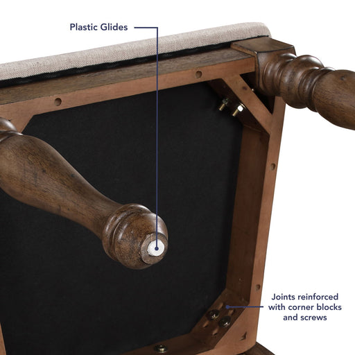 Add a touch of rustic charm to your space with the Joanna Bench. With its caramel finish, turned legs, and upholstered farmhouse styling, this benc...
