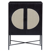 Fashionably store your wine and stemware with the Colson wine cabinet. This cabinet features a sturdy metal base that is offset with light and airy rattan door inserts. The black finish blends in beautifully with already existing decor. The cabinet has bottle and stemware racks along with a storage shelf to keep everything organized.