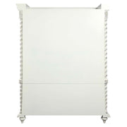 Sophisticated luxury radiates beautifully in the Vanaheim Dining Room Collection. Fabulous floral design with gorgeous details in each piece makes the collection classical and timeless. Antique white finish gives the surface an alluring feel and elegant touch. A clear glass dining table top allows light to filter into and through the whole table, enhancing the collection's overall design. Upholstery side chairs feature elaborate button-tufted design for adding extra style and comfort to the collection. This extremely extravagant style will make any ordinary dining room appear much more unique.