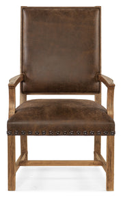 Inspired by the natural beauty of American wilderness landscapes, the Big Sky Host Chair is vintage, rustic and relaxing. Featuring an aniline leather seat and back and nailhead trim around the seat, the arms, stretcher and rockers are finished in Vintage Natural, a warm, rustic organic finish over Hickory Veneers. The dramatic chair back has a crosshatch design that is finished in the charcoal Furrowed Bark color.