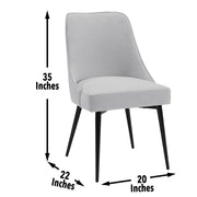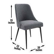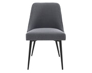 The Colfax side chairs feature a mid-century modern look with canted, round tapered metal legs finished in black. Available in your choice of Blue, Stone, Gray and Charcoal fabric or Black Faux Leather.