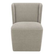 The Cormac rolling dining chair is all about comfort with a generously padded seat and backrest, a slight curve of the back and caster wheels that effortlessly glide across the floor. Crafted from high-performance fabric that is soft to the touch yet resilient against stains, spills, and daily wear.