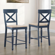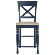 Add timeless charm to your space with the Darcy Solid Wood 24" Counter Chair, designed for 36-inch high counters. Its modified Napoleon X-back blends traditional elegance with modern versatility, while the two-tone finish combines deep midnight blue and a natural wood seat, showcasing warm, rustic-modern appeal. Turned front legs bring farmhouse charm, and clean lines keep the look fresh. Crafted for comfort and durability, the contoured seat invites relaxation, perfect for meals or gatherings. Ideal for dining rooms, kitchens, or breakfast nooks, it balances style and function beautifully.