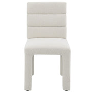 Hettie collection side chair enveloped in luxurious beige boucle, exudes timeless elegance and comfort. Its structured design and plush upholstery make it an ideal addition to any dining or living space. This chair not only provides a chic seating option but also enhances the aesthetic appeal of your home, promising to be a cozy yet stylish companion for your everyday moments.