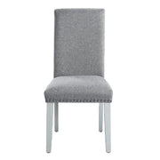 Upgrade your dining experience with the exquisite Lanton side chairs, where style, functionality, and comfort effortlessly blend. Its attention to detail and quality craftsmanship will elevate the aesthetics of your dining area while providing a comfortable seating option for you and your loved ones. The chairs stand on sturdy antique white wooden legs that add a touch of vintage charm to their overall design. The legs are carefully crafted to provide stability and durability, ensuring long-lasting use. Adorning the edges of the chair is a delicate nail head trim, adding a refined and decorative element. The nail head trim showcases intricate detailing, enhancing the chair's aesthetic appeal and creating a classic look. The chair is upholstered in a tasteful gray linen fabric that exudes both sophistication and versatility. The gray hue complements a wide range of interior styles, while the linen fabric adds a touch of texture and elegance. For optimal comfort, the chair features a foam-padded seat and backrest. The foam padding provides a plush and supportive seating experience, allowing you and your guests to sit comfortably for extended periods. Whether it's a casual family dinner or a formal gathering, this chair ensures a cozy and enjoyable dining experience.