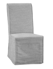The Mackie Dining Chair brings a touch of timeless elegance to your dining space. Wrapped in a faux slipcover with linen-like performance fabric in a soothing dove color, this chair combines classic style with modern functionality. The exaggerated welt-detailing adds a sophisticated touch, while the four casters ensure easy mobility, allowing you to move it effortlessly around your dining room. Whether hosting a formal dinner or enjoying a casual meal, the Mackie Dining Chair promises comfort and style in every gathering.
