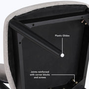 • Styling details include shaped upholstered back and wide upholstered seat for exceptional dining comfort and style with tapered (top and bottom) solid wood legs