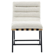 The Nicco Side Chair elevates any space with its perfect blend of modern design and comfort. Ideal for dining, accent, or office use, this chair features a cushioned seat and back with a sleek channel design, upholstered in easy-care in an color that complements any décor. The webbed seat suspension offers "floating" comfort, while the durable iron frame, reinforced with side and cross stretchers, ensures lasting stability. The Nicco Side Chair delivers style and function in one sleek package.