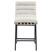 The Nicco 24" Counter Chair elevates your counter space, perfectly blending modern design with comfort. Designed for 36-inch high counters, this chair features a 24-inch high cushioned seat and back with a sleek channel design, upholstered in easy-care colored that complements any décor. The webbed seat suspension provides "floating" comfort, while the durable iron frame, reinforced with side and cross stretchers, ensures lasting stability. The Nicco 24" Counter Chair delivers style and function in one sophisticated package.