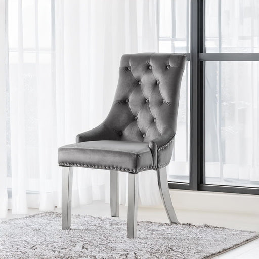 Satinka - Side Chair (Set of 2) - Dark Gray Satinka - Side Chair (Set of 2) - Gray Fabric & Mirrored Silver24.0"W x 20.0"D x 40.0"H - 55.0 lb
