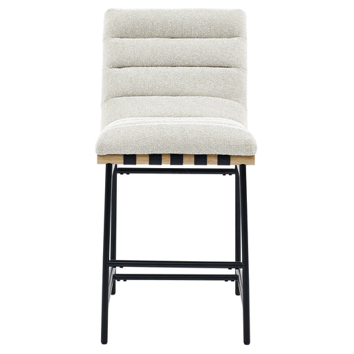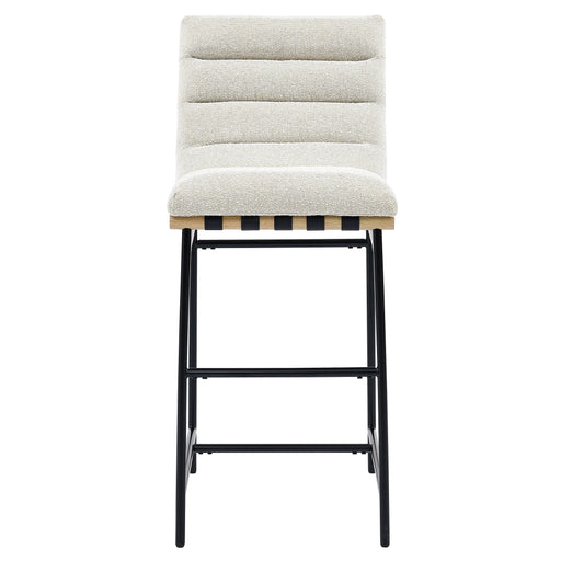 Perfect for any setting, this stool features a sturdy cold-rolled steel base and a cushioned seat in a soft oatmeal boucle weave. The 4" cushioned ...