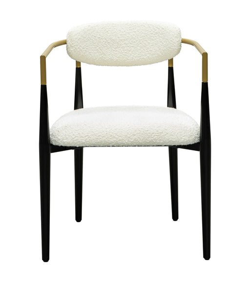 Jenson - White Dining Chair - Semi-Gloss Black /Brushed Gold / Ivory Boucle Jenson - White Dining Chair - Semi-Gloss Black /Brushed Gold / Ivory Bo...