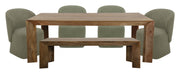 Crafted from solid mango, this table boasts a unique aesthetic with natural variations of color, wood grain, and knots. The geometric mitered edge creates a seamless transition between the table top, apron, and angled legs, and is generously proportioned to comfortably seat up to eight guests. The bold, simple silhouette features sleek angular details for distinctive beauty, making it the perfect addition to any home. Handcrafted by artisans, each table is a true work of art that will add authentic global-inspired character to your home. Exquisitely finished by hand, this table is sanded, stained, and sealed with a lacquer top coat, ensuring a durable and long-lasting surface. The wood is kiln-dried to minimize warping and splitting, ensuring that this table will be a beloved piece in your home for years to come. Entertain in style with the 86 Inch Rectangular Table.