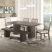 Entertain your family and friends with the bold contemporary styling of Mila. A fashion-forward washed finish over hardwood solids and ash veneers pairs beautifully with the modern trestle table and bone linen side chair. The chair is wood-framed that looks as good from the back as from the front. Add the bench for generous seating for multiple adults and/or children.