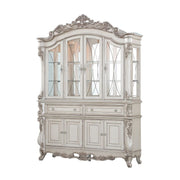 Exclusively designed and filled with romantic spirit, this hutch and buffet with oversized crown and golden ivory finish. This stylish and detailed collection is ideal for a large gathering and will add elegance to any dining room Decor.