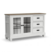 • One large double cabinet with an adjustable shelf and three storage drawers