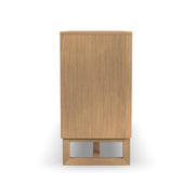 - Double door cabinet and side single door cabinet each contain an adjustable wood shelf
