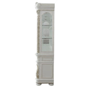 Commanding attention in any space, the impressive design of the Vendom double pedestal dining table will impress everyone. Adorned with classic elements including scrolls, curved shapes, and leaf molding accents to create an old-world charm. The antique pearl finish is accentuated with hand-brushed gold to make the molding details stand out.