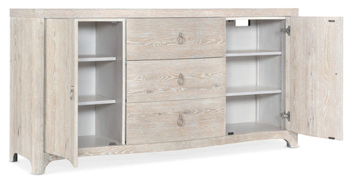 In a light and airy whitewashed and wire brushed oak finish and a soft serpentine-shaped case, the Serenity Buffet brings the relaxed aura of the o...