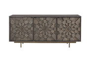 • Rustic Boho charm with a unique sunburst pattern on the three-door Bates Server