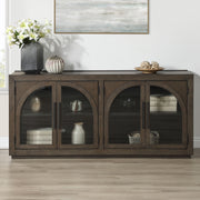 A masterpiece of versatility and style, the Burlington Server reveals a world of display possibilities behind beautiful Cathedral glass doors. Hand-stained in a striking cocoa finish with a contrasting black interior, this cabinet features adjustable shelves and hidden cable management for a seamless transition from a dining room sideboard, to a living room entertainment center, or even a stunning hallway console The clean lines and modern style of the Burlington Server adds elegance, sophistication and storage to any room in a home.