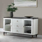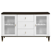 The Carena dining set exudes timeless elegance with its white and brown finish. The rectangular dining table features an extension top, perfect for hosting larger gatherings. Paired with stylish side chairs and a matching server, this set combines form and function beautifully. The server offers ample storage, making it both practical and sophisticated, ideal for enhancing any dining room ambiance.