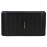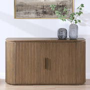 Experience the Colvin Server’s modern allure with gently rounded, reeded front doors, emanating elegance. This piece blends old Hollywood glamour with generous storage and European concealed hinges for a seamless aesthetic. Two adjustable shelves within offer practicality, while satin brass hardware accents add a touch of sophistication. Revel in its romantic charm while effortlessly concealing dining essentials.