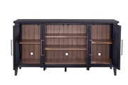 The Fynn Server blends modern and traditional styles. Crafted with solid wood and flat-cut oak veneers, it features a two-tone finish-matte black oak exterior and light natural oak interior. The breakfront case design adds timeless elegance, while the four doors reveal a versatile interior with adjustable shelves and media cord management. Fynn invites you to embrace sophistication and functionality, creating a space that feels authentically yours.