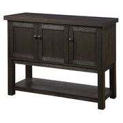 Complete your dining space with the sophisticated Haddie dining room set. This transitional group features a distressed finish with the understated styling of rustic design. The table features a sophisticated trestle base with crossbar support and grooved panels, while the matching chairs come with a ladder back with scooped seat. Adding the server with wine bottle storage to make the collection the most elegant focal point in your home.