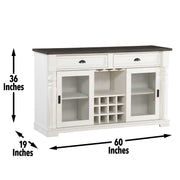 Joanna presents a classic farmhouse Server updated for today's dining. Turnedpilasters combine with cup pulls to create a look that feels both new and vintage. The Server has a two-tone ivory and mocha and features sliding glass doors that are great for display of collectibles. A middle wine rack with hanging stemware storage and three shelves add to the storage and convenience of the unit.