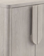 - Its minimalist design highlights the charming washed blonde oak finish and gentle curves that extend across the collection