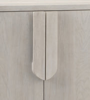The Karina Server effortlessly combines refined glam with a modern and chic design, creating a piece that's as stylish as it is functional. Its minimalist design showcases a lovely washed blonde oak finish, complemented by soft curves that carry throughout the collection. Crafted from high-quality rubberwood solids and flat cut oak veneers, the Karina Server exudes both elegance and durability, making it a stunning addition to your home decor. With four doors opening to two cabinets, each featuring an adjustable shelf and convenient media cable storage, this server is not only a beautiful piece but also a practical addition to your living space.