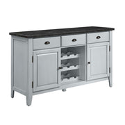 Upgrade your dining space with this exquisite Lanton server and enjoy the convenience of having everything you need at your fingertips while adding a touch of timeless beauty to your home. Whether it's hosting a dinner party or simply organizing your dining essentials, this server with a natural marble top, antique white finish, three drawers, a wine rack, and two side cabinets is a versatile and stylish addition to your dining room. Its combination of elegance, storage options, and durable construction make it a standout piece that effortlessly merges form and function. The antique white finish of the server brings a sense of timeless beauty and vintage charm to your dining area. It effortlessly complements various interior styles, creating a warm and inviting atmosphere. The server's natural marble top adds a touch of sophistication and refinement to the overall design. The smooth and polished surface provides an exquisite platform for serving and displaying items, while also offering easy cleaning and maintenance.