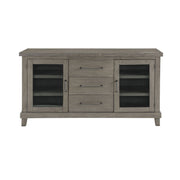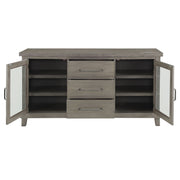 Embrace the bold contemporary styling with this functional Server from the Mila collection. Three drawers give plenty of options for hidden storage while two glass doors give an opportunity to display both your collectibles and style on the two internals shelves. The fashion-forward washed grey finish over hardwood solids and ash veneers looks great and will blend well in any contemporary environment.