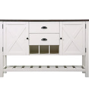 Developed with an emphasis on period authenticity, Mountain Retreat blends the strength of pine solids with the rustic texture of rough sawn timbers. Starting with a dark mocha color applied to the thick, planked table top, the two-tone finish pairs a soft, antique white to the heavy turned legs. Cross-brace elements on the seat backs and buffet doors complete the classic country style of Mountain Retreat.