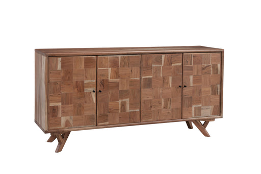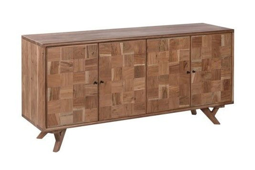 The Jarvis Server blends modern style with solid mango wood in a natural finish. With four doors showcasing a subtle patchwork pattern and matte bl...
