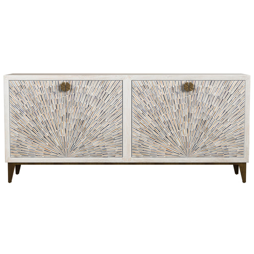 The Bates Server is the perfect blend of Boho artistry and functionality, with three doors and a unique sunburst pattern. Crafted from solid sandbl...