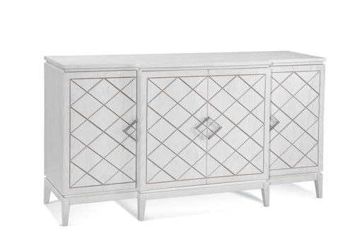 Meet the Perrine White Server, a fine example of modern glam design. With its four doors featuring a geometric carved design highlighted by a gold ...