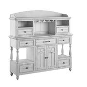 Grand in scale but casual in feel, the New Haven dining collection is an easy winner decorated with classic arches, scored fronts, and turned wood details. The oyster shell finish with light distressing lends a weathered appearance that pairs with charming antique pewter pulls and knobs for a seaside look. Make your home feel like summer year-round with the charmingly coastal New Haven collection.