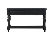 The Odessa server embodies farmhouse-inspired charm, offering a relaxed yet refined piece that serves as the perfect dining or accent piece for any room. Crafted from pine veneers and hardwood solids, this side piece wears its artful distressing with pride, culminating in a modern black stain that effortlessly breathes new life into the casual aesthetic. It's an instant update, a fresh breeze in the world of design. Two generously sized, felt-lined drawers quietly await your dining essentials and precious valuables, providing not just storage, but a touch of indulgence. Meanwhile, the solid wood legs, with their delicate turn, evoke the spirit of antiques, lending an authentic, timeless feel.