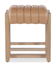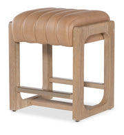 The Banyon Bay Counter Stool offers a sleek and functional seating solution for your kitchen or bar area. Made with solids and veneers, this backless stool features a leather seat with channeled stitching for added comfort. The metal footrest in a finish adds a stylish accent to the stool’s minimalist design.