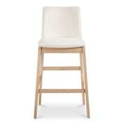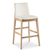 A sophisticated union of natural beauty and refined comfort, the Deco barstool's adaptable design seamlessly complements both formal and casual settings. Its solid oak frame imparts a warm, organic ambiance while providing a sturdy and supportive foundation. Upholstered in sleek, easy-to-clean vegan leather, this barstool exemplifies versatility and effortless elegance.