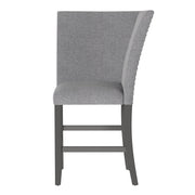 The transitional Seneca collection hosts a unique blend of features and seating options. A delightful medium gray finish on walnut veneers forms a quarter-turned pattern on the tabletop, culminating in the built-in 18” lazy Susan. The tapered frame spreads out to encompass a lower shelf for extra storage. Seating with light gray upholstery and gently curved backs decorated with dark pewter nailhead trim, you can stay more traditional with just stools or more casual by mixing in a bench or two. Combine two benches with backs with the unique corner piece to make seating perfect for a corner nook. Accentuate your personal style and give the Seneca a whirl.