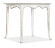Capturing the vintage charm of the coastal South, the Charleston Breakfast Table is crafted of Maple Veneers and has a scalloped apron design. The finish is Magnolia White, a color originally created from the purest limestone, used to paint the pillars, posts and fences of classic southern homes. The round table has understated cabriole legs, a Solid-Wood Edge top and accommodates up to 4 coordinating chairs.