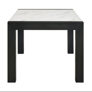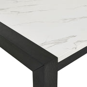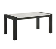This contemporary dining group offers a clean, sophisticated aesthetic with a perfect balance of contrast and simplicity. The sleek table features a faux marble top that delivers a touch of elegance, while the bold, dark wood frame adds depth and stability. Coordinating chairs and bench are upholstered in a soft, light-toned fabric that enhances comfort and complements the neutral palette, making it easy to style with various décor themes. Ideal for both casual meals and formal gatherings, this set brings modern refinement and everyday functionality to the heart of the home.