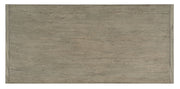 Capturing the essence of nature’s organic color palette and accented by antique pewter metal bands on the legs, the versatile Norwood Friendship Table can be used as a tall desk, counter-height dining table, gathering table or project table. It is height adjustable to 30-inch dining height or 36-inch counter height and has two 12-inch leaves. Crafted of Oak Veneers, it is finished in a soft smoked gray Mink color.