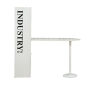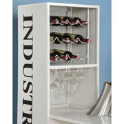 If you are looking for a functional piece for gathering, this is the counter height set that has it all. The Mant counter height set features a wall storage case with upper rack for all of your stemware and wine bottles, and a lower cabinet for the private reserves. Have a seat at the stools, which featuring a stylish "bottle cap" seat and metal base with footrest; and entertain at the table top with half round end to tie in with the single leg base. This will be a great additional to any small dining or entertaining area in your home.