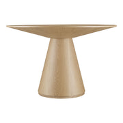A stately solid wood statement with an oak veneer round top, the Otago 54 inch round dining table’s flared base & sleek top create a warm aesthetic, allowing it to fit seamlessly in any dining area. A triumph in paired-back contemporary design, the Otago is a sublime showcase of oak’s natural character.
