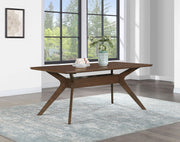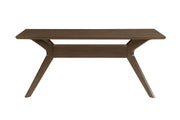 The Quinn 71-inch dining table brings style and sophistication to any dining room. Crafted from top-quality oak veneers and Asian hardwood solids, this dining table is built to last with a sleek and elegant design that is the epitome of mid-century modern at its finest. Built to comfortably seat six people, Quinn is the perfect choice for hosting dinner parties, family gatherings or casual meals with loved ones. The unique curved, angular trestle base adds a touch of modern flair, while the rich chestnut finish exudes warmth and elegance. But Quinn is more than just a dining table – it’s a statement piece that’s sure to impress. Its space age design harkens back to the great Mid-Century designers and is perfect for those who appreciate modern aesthetics, while its durable construction ensures that it can withstand the rigors of everyday use. Upgrade your dining experience with Quinn, the modern 71-inch dining table that perfectly blends style and functionality. Whether you’re enjoying a meal with family or hosting a dinner party with friends, Quinn is the perfect centerpiece for your dining room.