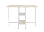 Alluring in its simplicity and function, this versatile counter high table is design with two open shelves on the base. Comprised of stark lines and sleek angles, its modern metal base paired with wooden shelves tell us simple really is better. A chrome finish gives the table a glam look and feel. It offers a spacious table top and storage compartments that work great in homes with limited space. Associated your space with simplicity, neutral tone, and clean lines, the contemporary-style counter high stool matches any decor of a dining room. The padded seat cushion is fully covered in a soft beige velvet, sitting atop a metal base shining with a chrome finish. Footrest is added to the metal base for extra durability and support. Give your dining room a minimalist design look and feel with the Raine counter height set.